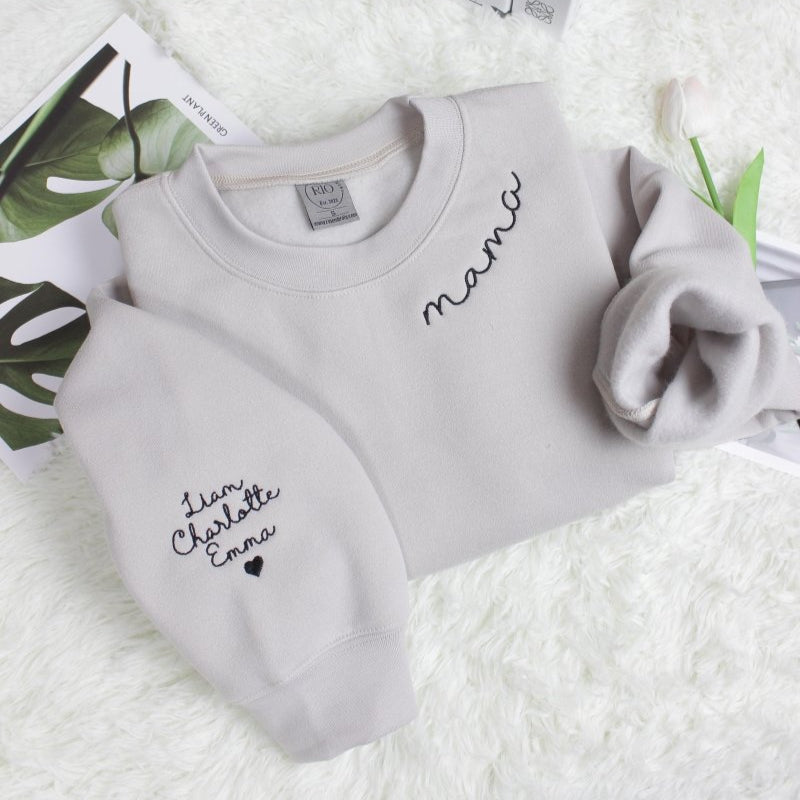 Embroidered Custom Mama Sweatshirt with Children Name on Sleeve