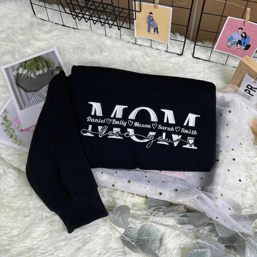 Mom Sweatshirt with Kid Names, Custom Embroider Mom Sweatshirt